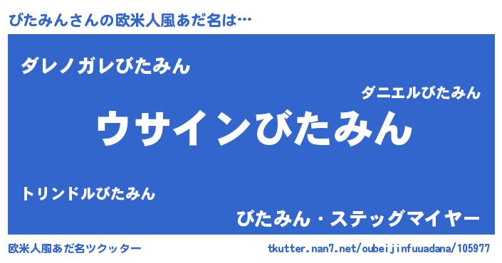 | 女子向けラノベタイトル風あだ名 | 『びたみん様がみてる』 |