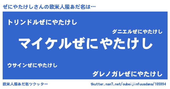 | 男性向けラノベタイトル風あだ名 | 『ぜにやたけしの憂鬱』 |