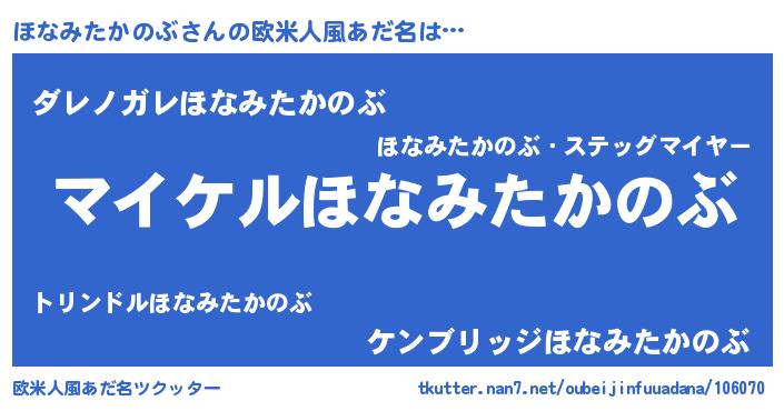 | ヘコむあだ名 | 『ほなにゅー』『ほなみたかのぶ(遠い目)』 |