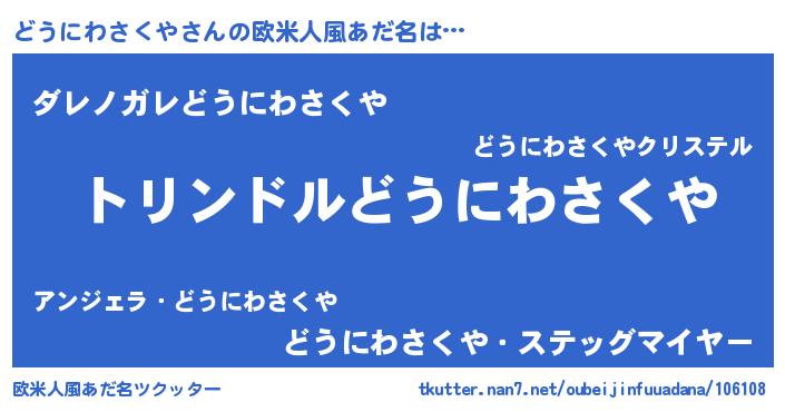 | 男性向けラノベタイトル風あだ名 | 『どうにわさくや~年齢イコール彼女いない歴の魔法使い~』 |