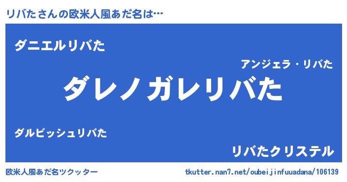 | 男性向けラノベタイトル風あだ名 | 『この素晴らしい世界にリバたを!』 |