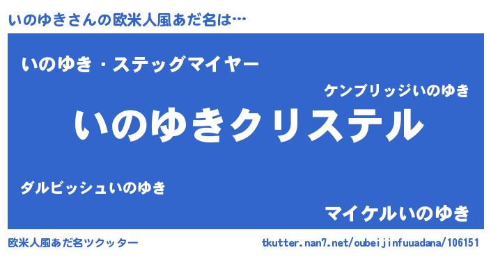| 男性向けラノベタイトル風あだ名 | 『やはりいのゆきの青春ラブコメはまちがっている 』 |