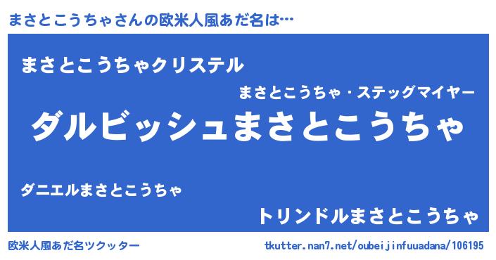 | 女子向けラノベタイトル風あだ名 | 『異世界で失敗しない100のまさとこうちゃ』 |