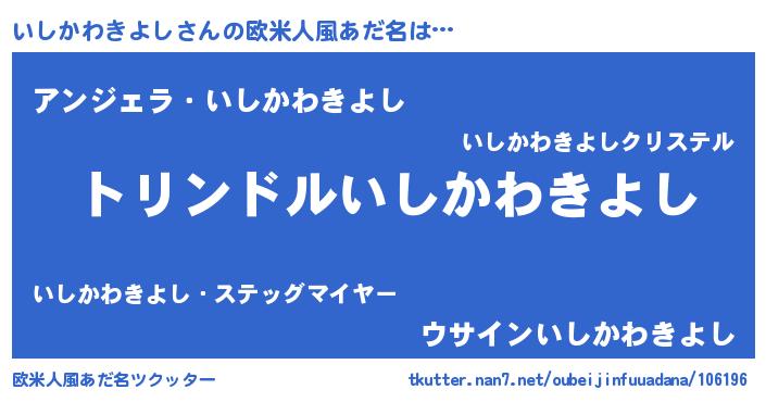 | 男性向けラノベタイトル風あだ名 | 『転生したらいしかわきよしだった件』 |