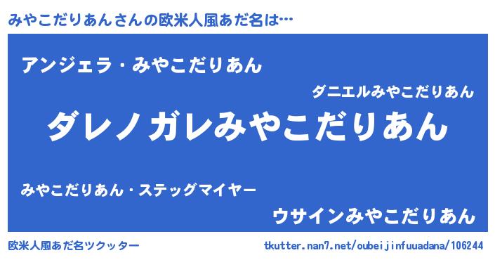| 男性向けラノベタイトル風あだ名 | 『この素晴らしい世界にみやこだりあんを!』 |