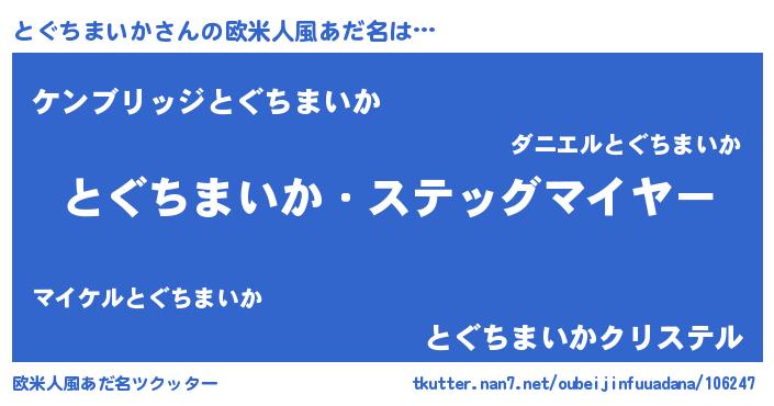 | 意味不明あだ名 | 『自称とぐちまいか』 |