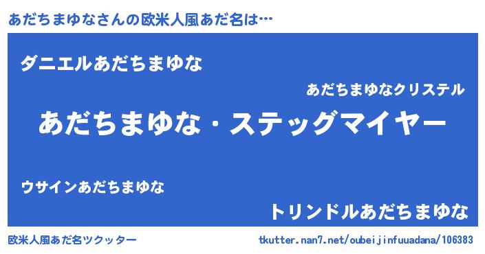 | 女子向けラノベタイトル風あだ名 | 『シンデレラあだちまゆな家の靴箱館』 |