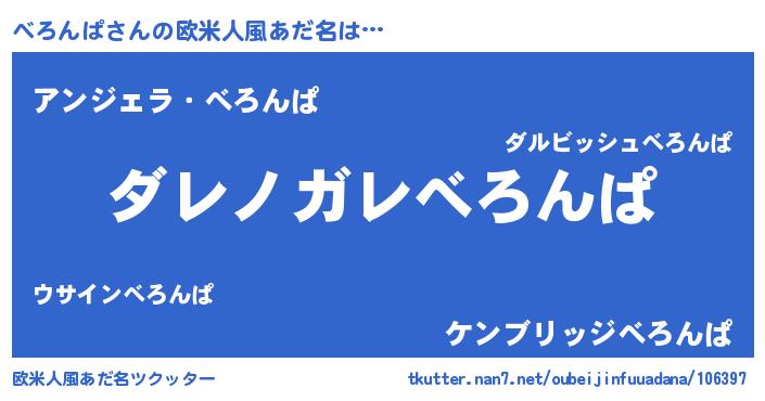 | 男性向けラノベタイトル風あだ名 | 『魔弾の王とべろんぱ』 |