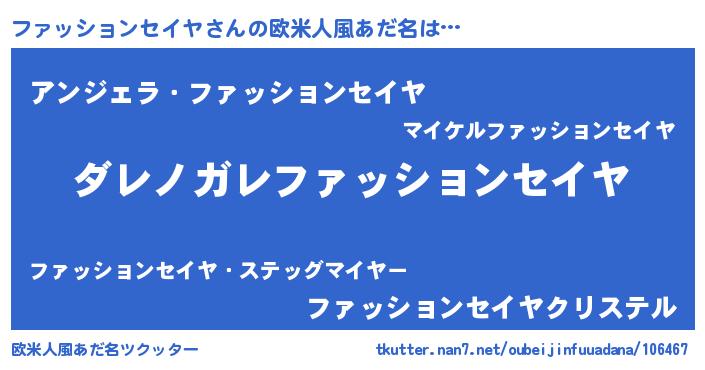 | 意味不明あだ名 | 『住所不定無職ファッションセイヤ(91歳)』 |
