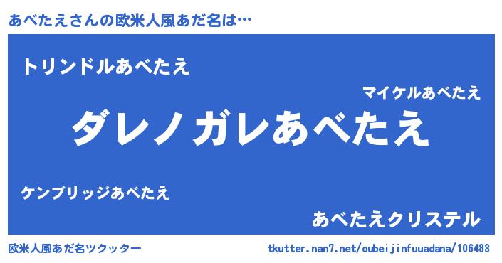 | 意味不明あだ名 | 『住所不定無職あべたえ(1歳)』 |