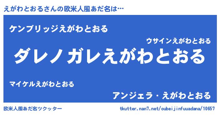 | ヒーロー風カッコイイあだ名 | 『仮面エガダー』『最強戦士エガワトオル』 |