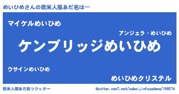 | 男性向けラノベタイトル風あだ名 | 『Re:めいひめから始める異世界生活』 |