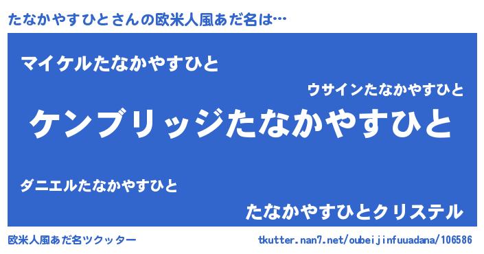 | 男性向けラノベタイトル風あだ名 | 『Re:たなかやすひとから始める異世界生活』 |