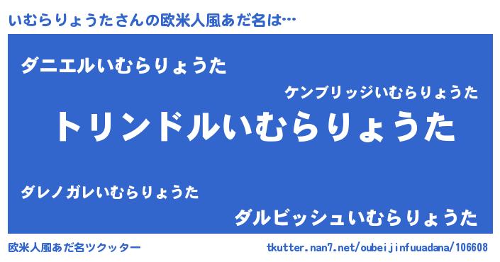 | 男性向けラノベタイトル風あだ名 | 『転生したらいむらりょうただった件』 |