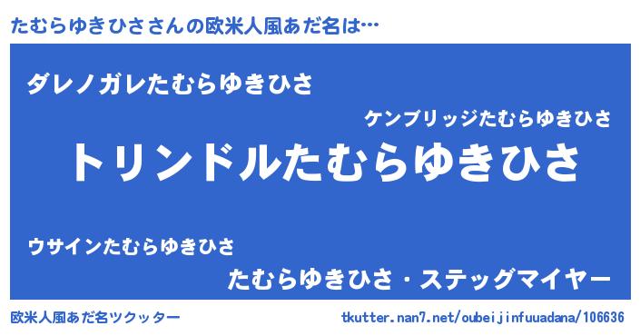 | 男性向けラノベタイトル風あだ名 | 『転生したらたむらゆきひさだった件』 |