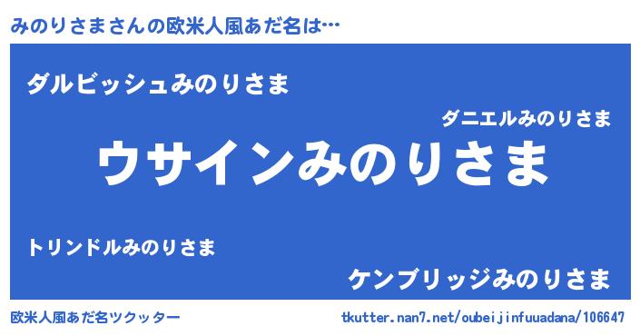 | 男性向けラノベタイトル風あだ名 | 『みのりさまの嫁は女の子じゃないと思った?』 |