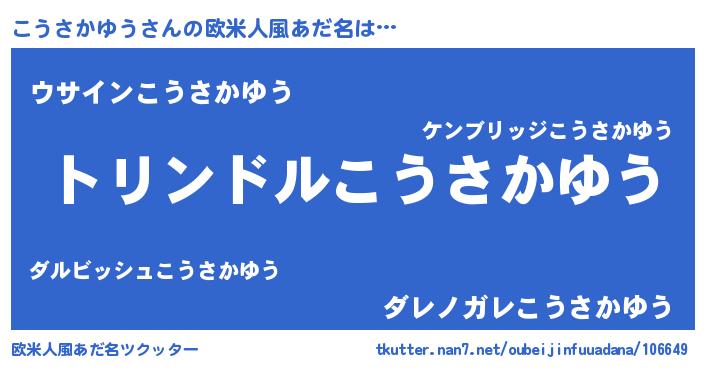 | 胡散臭い通販商品みたいなあだ名 | 『信頼と実績のサプリメント…その名も「こうさかゆう」』 |