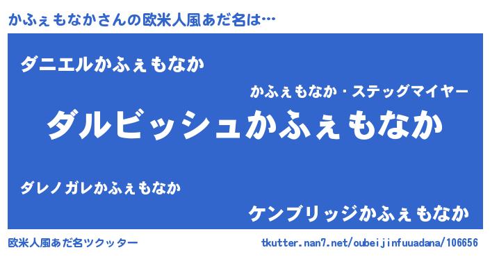 | 男性向けラノベタイトル風あだ名 | 『かふぇもなかという概念が存在しない退屈な世界 』 |