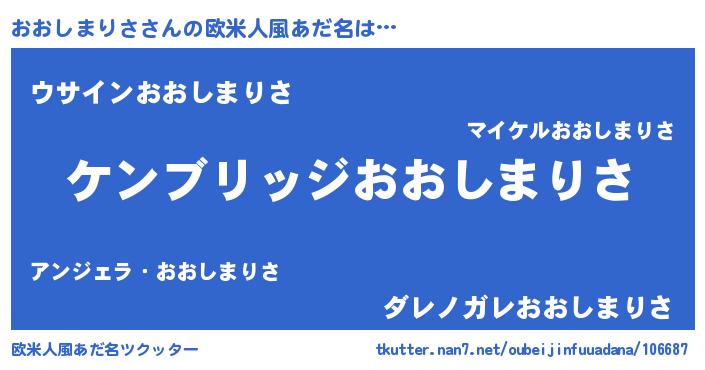 | 意味不明あだ名 | 『自称おおしまりさ』 |