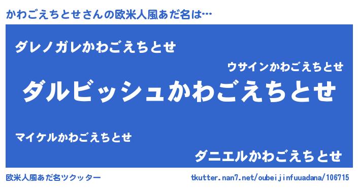 | 男性向けラノベタイトル風あだ名 | 『かわごえちとせという概念が存在しない退屈な世界 』 |