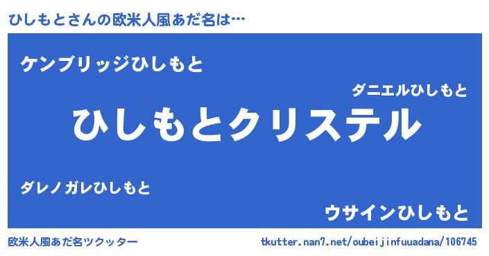 | ファンタジー風あだ名 | 『エターナルヒシモトー』『ゼヒシトゥ』 |
