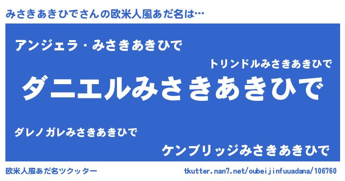 | 男性向けラノベタイトル風あだ名 | 『おまえをオタクにしてやるから、俺をみさきあきひでにしてくれ! 』 |