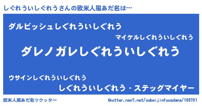 | 男性向けラノベタイトル風あだ名 | 『魔弾の王としぐれういしぐれう』 |