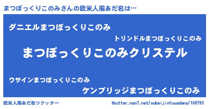 | 男性向けラノベタイトル風あだ名 | 『やはりまつぼっくりこのみの青春ラブコメはまちがっている 』 |
