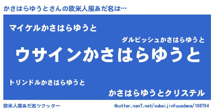 | 男性向けラノベタイトル風あだ名 | 『ダンジョンにかさはらゆうとを求めるのは間違っているだろうか』 |