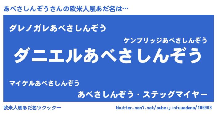| 男性向けラノベタイトル風あだ名 | 『おまえをオタクにしてやるから、俺をあべさしんぞうにしてくれ! 』 |
