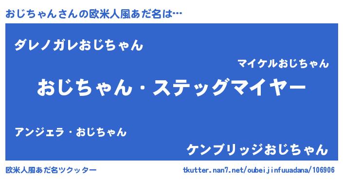 | 男性向けラノベタイトル風あだ名 | 『うちのおじちゃんが世界を掌握している!』 |