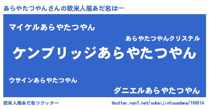 | 女子向けラノベタイトル風あだ名 | 『あらやたつやんストレイドッグス』 |