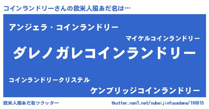 | 男性向けラノベタイトル風あだ名 | 『魔弾の王とコインランドリー』 |