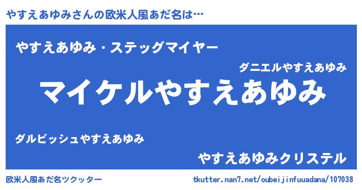 | 男性向けラノベタイトル風あだ名 | 『やすえあゆみの憂鬱』 |