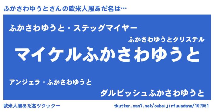 | 男性向けラノベタイトル風あだ名 | 『ふかさわゆうとの憂鬱』 |