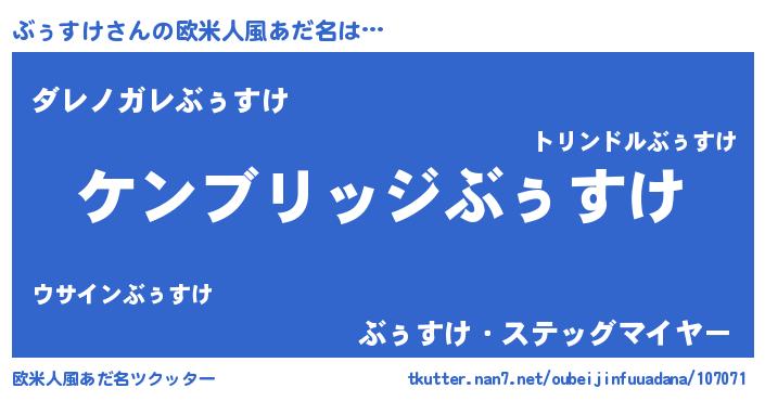 | 男性向けラノベタイトル風あだ名 | 『Re:ぶぅすけから始める異世界生活』 |