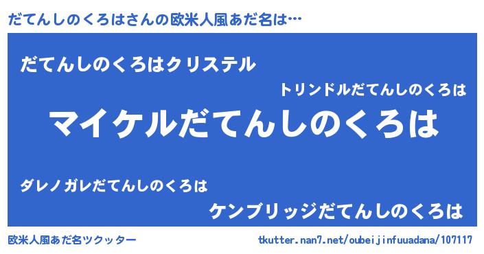 | 男性向けラノベタイトル風あだ名 | 『だてんしのくろはの憂鬱』 |