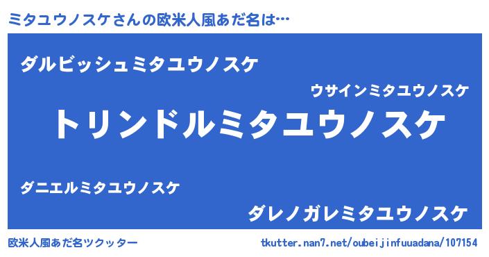 | 男性向けラノベタイトル風あだ名 | 『ミタユウノスケ~年齢イコール彼女いない歴の魔法使い~』 |