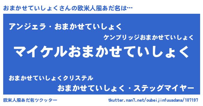 | 男性向けラノベタイトル風あだ名 | 『オマカセテイショクアートオンライン』 |