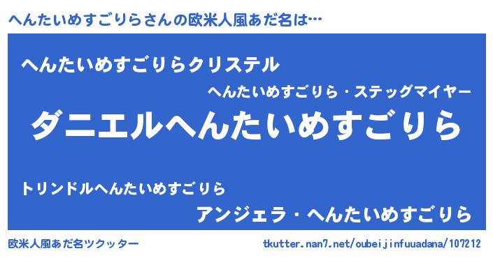 | 胡散臭い通販商品みたいなあだ名 | 『100人中100人が認めたマグネット磁石…その名も「へんたいめすごりら」』 |