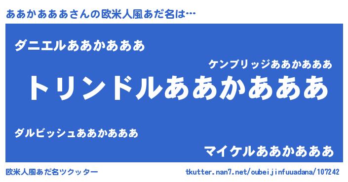| 男性向けラノベタイトル風あだ名 | 『転生したらああかあああだった件』 |