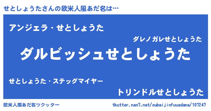 | 意味不明あだ名 | 『永久保存せとしょうた』 |