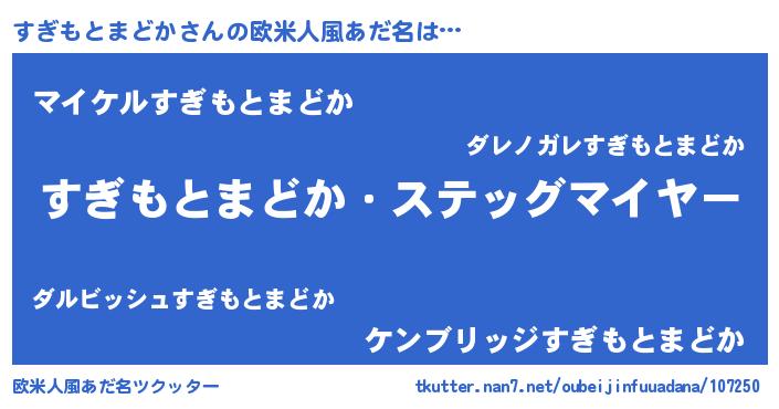 | 胡散臭い通販商品みたいなあだ名 | 『必ず成功する霊験あらたかなお札…その名も「すぎもとまどか」』 |
