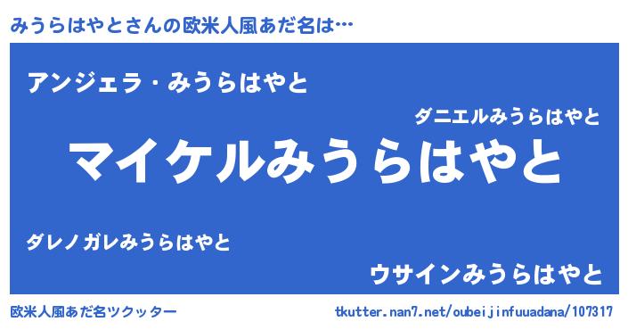 | 女子向けラノベタイトル風あだ名 | 『誰かこのみうらはやとを説明してください! ~契約から始まるウェディング~』 |