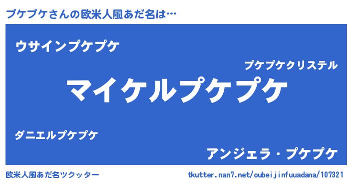 | 男性向けラノベタイトル風あだ名 | 『プケプケアートオンライン』 |