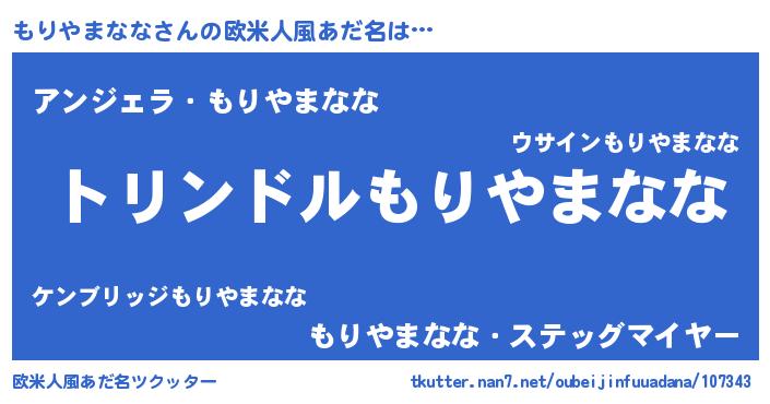| 男性向けラノベタイトル風あだ名 | 『転生したらもりやまななだった件』 |