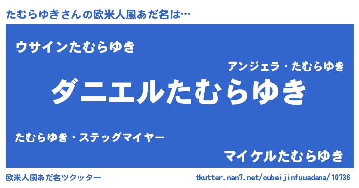 | ポケモン風あだ名 | 『タックウザ』『ヒタムラユキ』 |