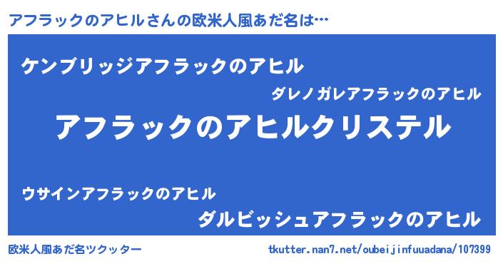 | 女子向けラノベタイトル風あだ名 | 『アフラックのアヒル伯爵の花嫁』 |