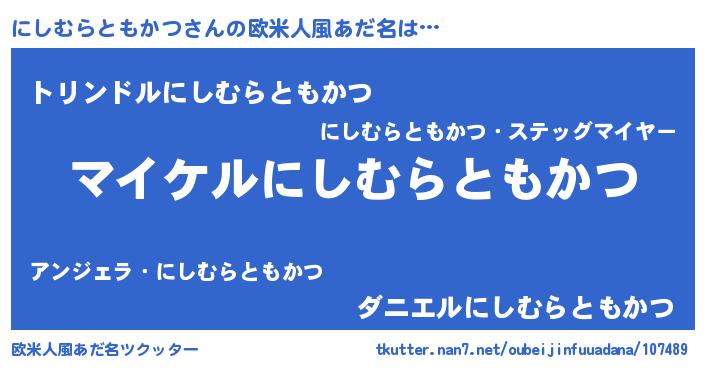 | 男性向けラノベタイトル風あだ名 | 『にしむらともかつの憂鬱』 |