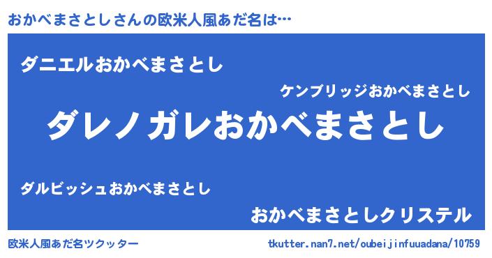 | 男性向けラノベタイトル風あだ名 | 『魔弾の王とおかべまさとし』 |